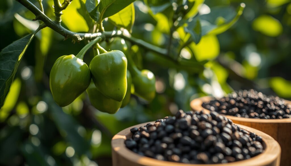 The magic happens when the vine produces tiny green berries arranged in long clusters that look like miniature grapes. But here’s the COOL part – timing is everything! Farmers have to pick these berries at exactly the right moment, when they’re still green & not quite ripe. If they wait too long, the berries will turn red & become a completely different spice. It’s like catching a butterfly at just the perfect second!